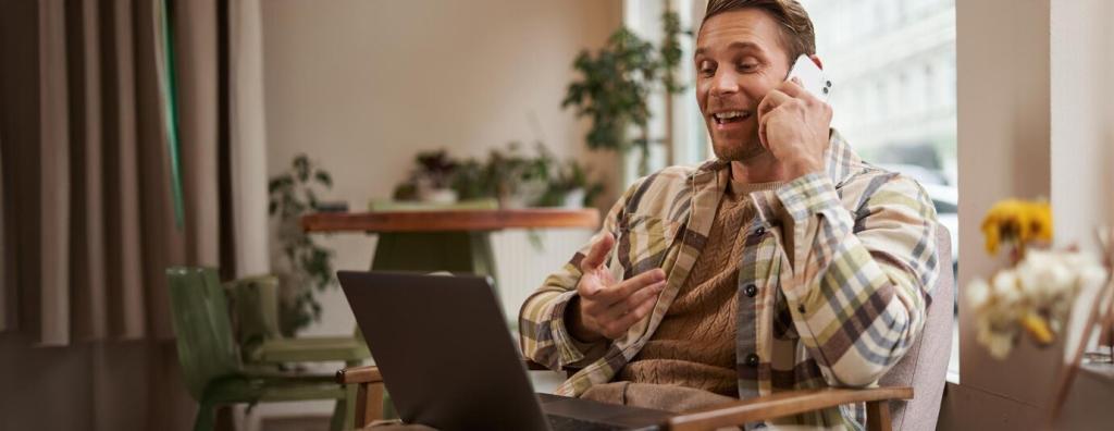 Kurze Videonachrichten und Audioclips vermitteln Tonfall und Kontext, ohne ein Meeting zu benötigen. Kompakte Zusammenfassungen, klare Fragen und ein Terminvorschlag nur bei Bedarf machen den Austausch konzentriert und wertschätzend.